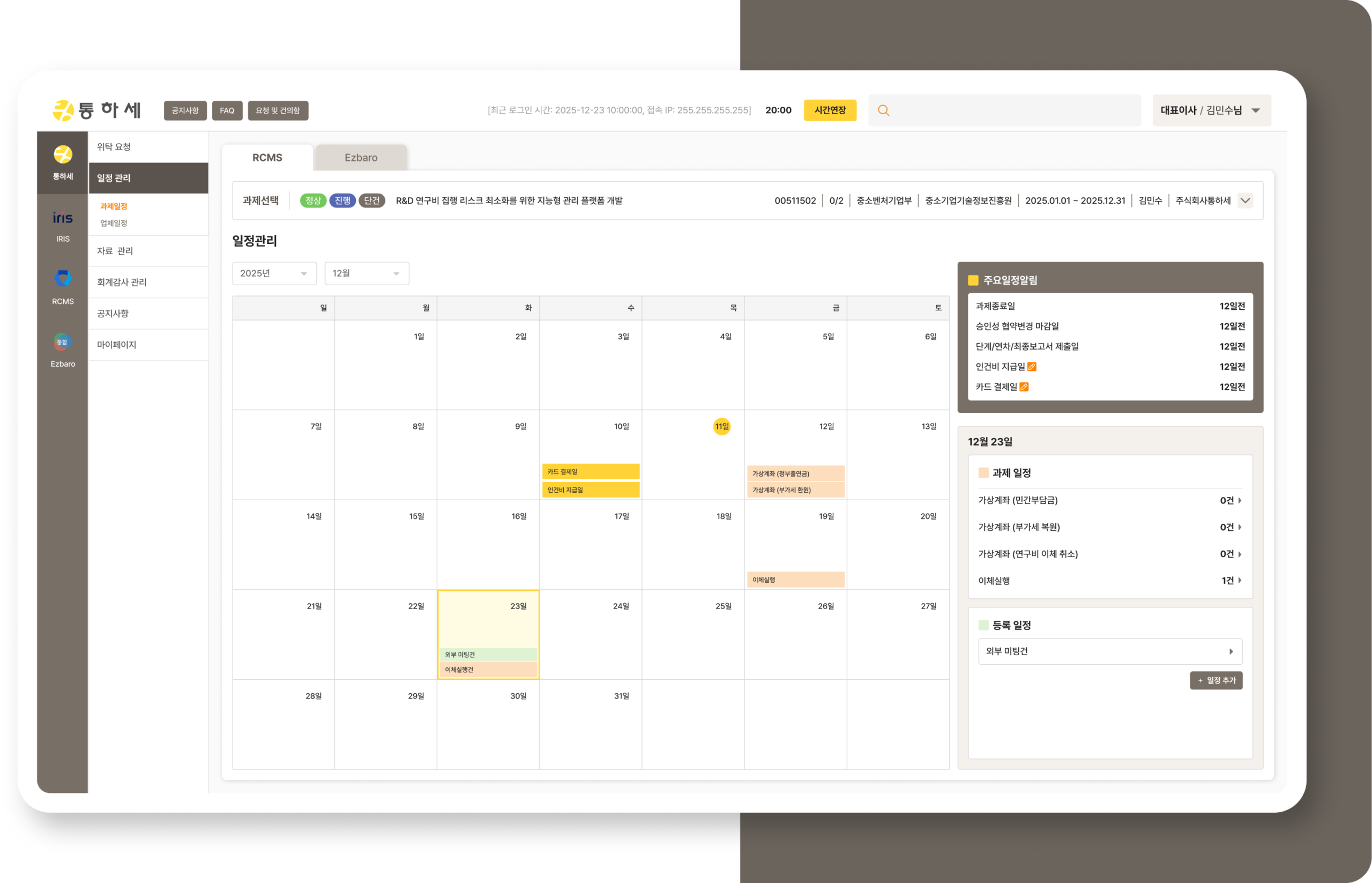 여러 시스템을 오갈 필요 없습니다. 통하세에서 처리하고, 기관 제출까지 끝냅니다.