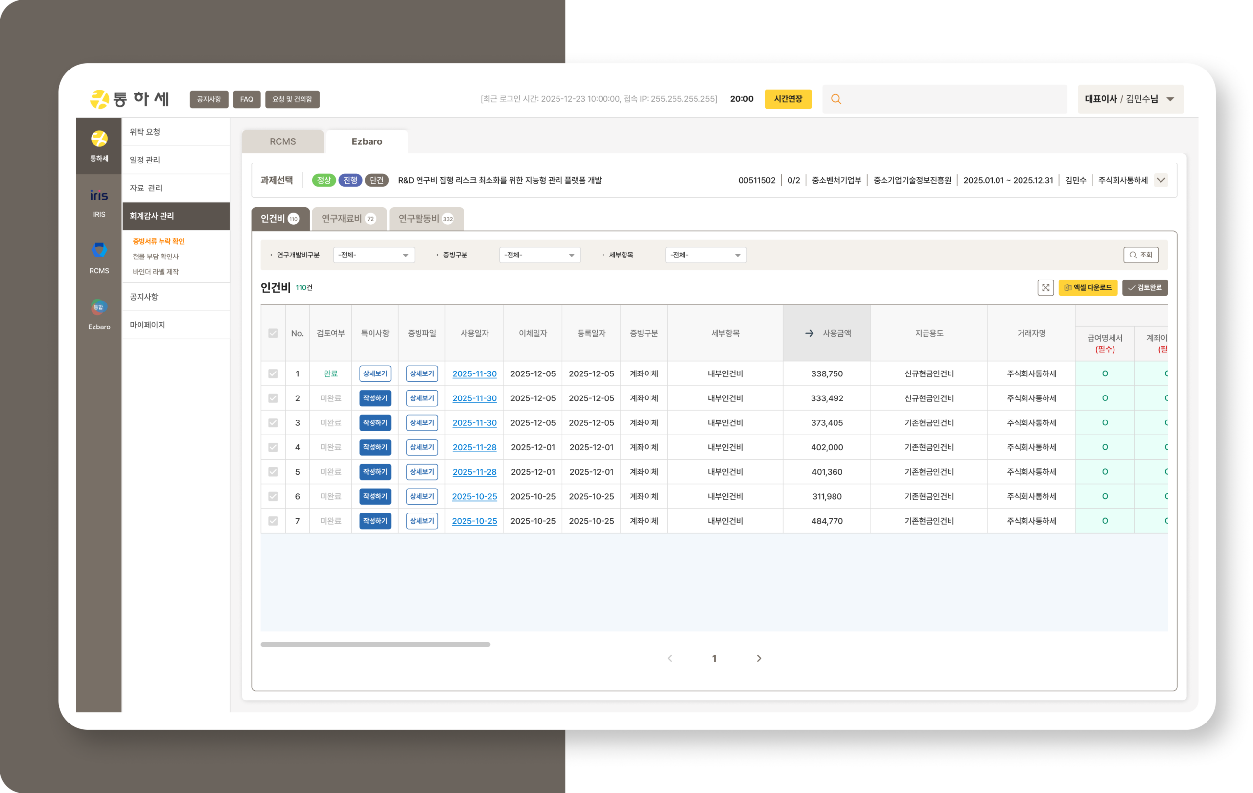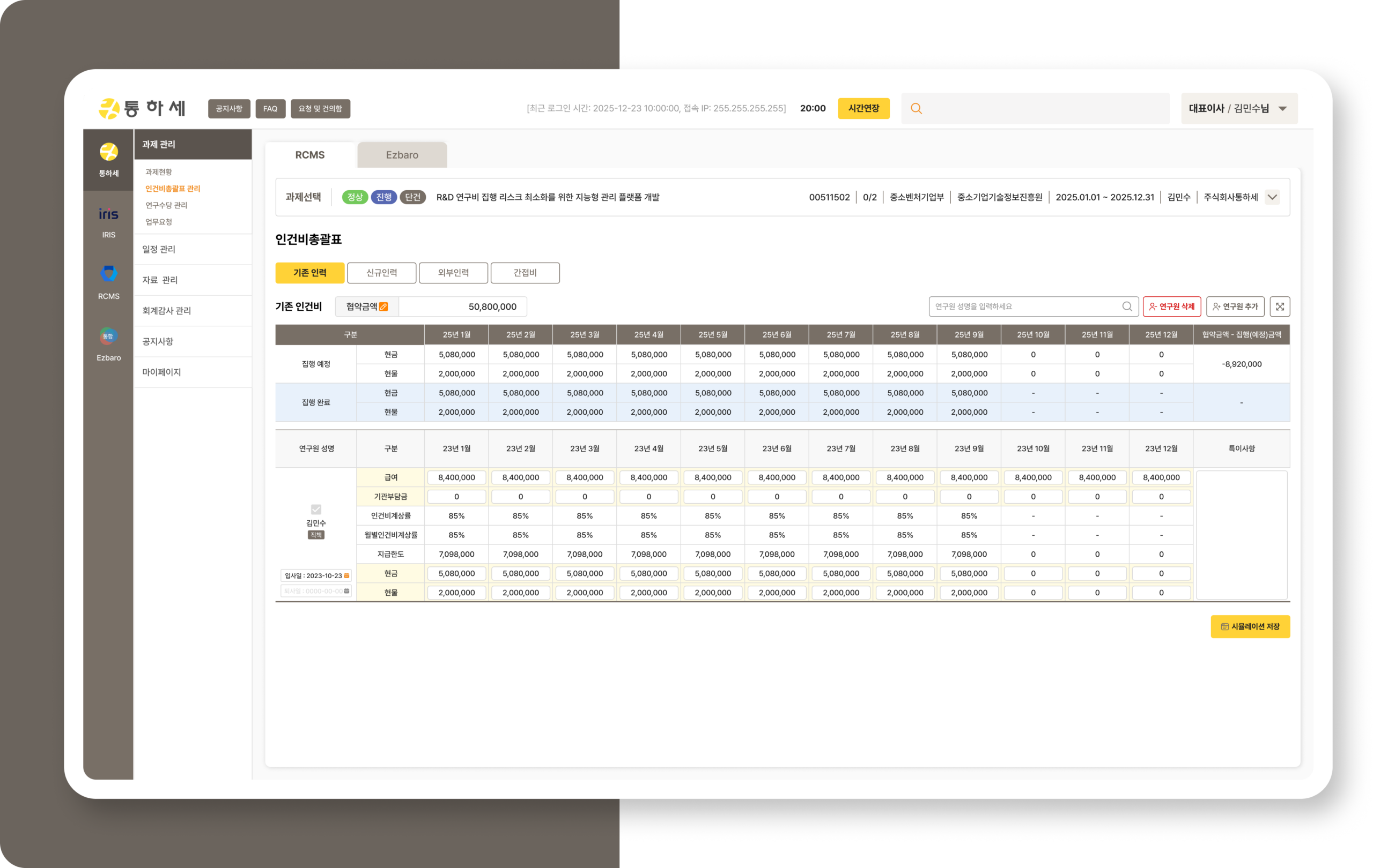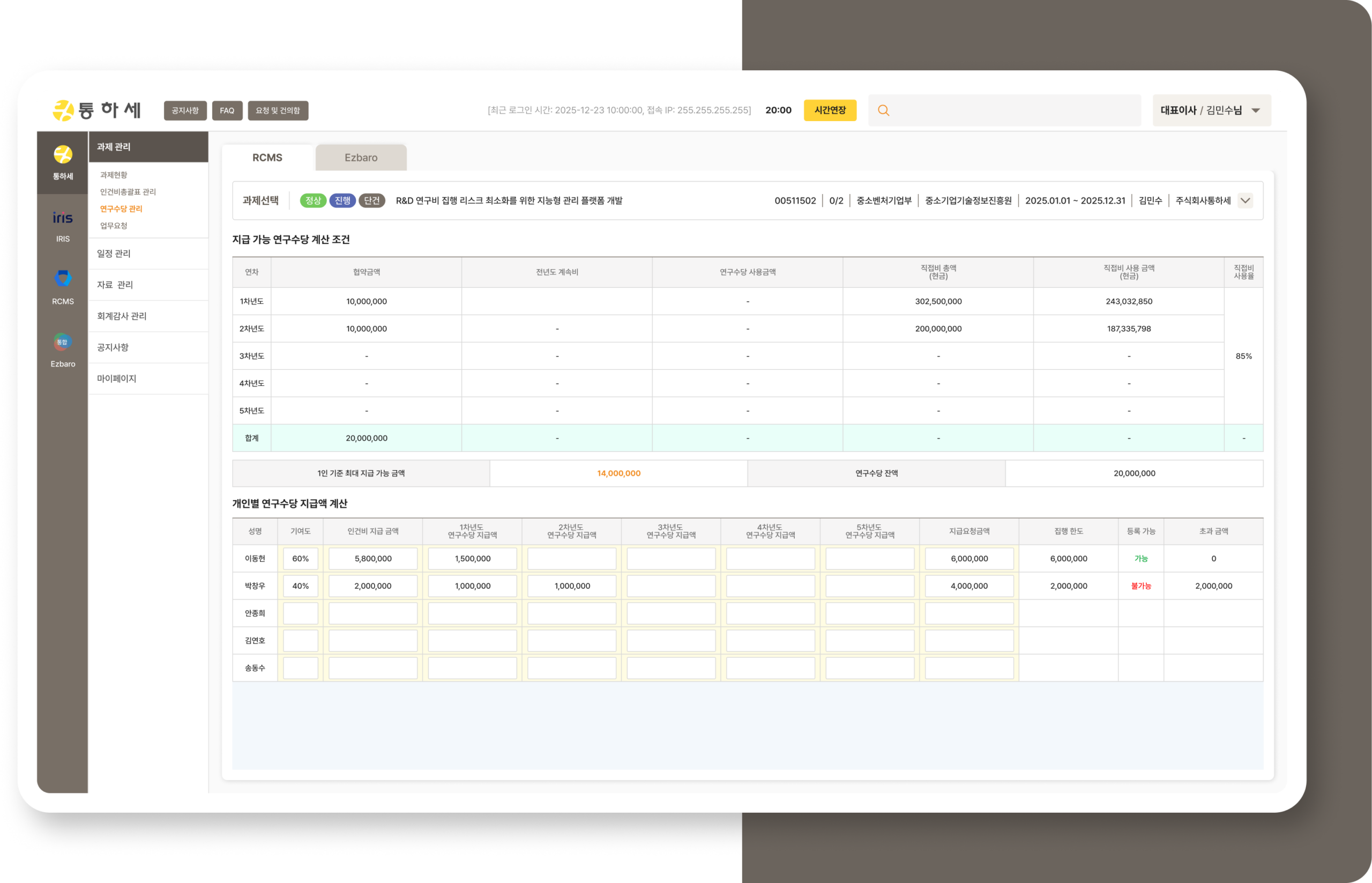 연구수당 계산과 연동돼 전체 인건비 흐름이 자동 정리